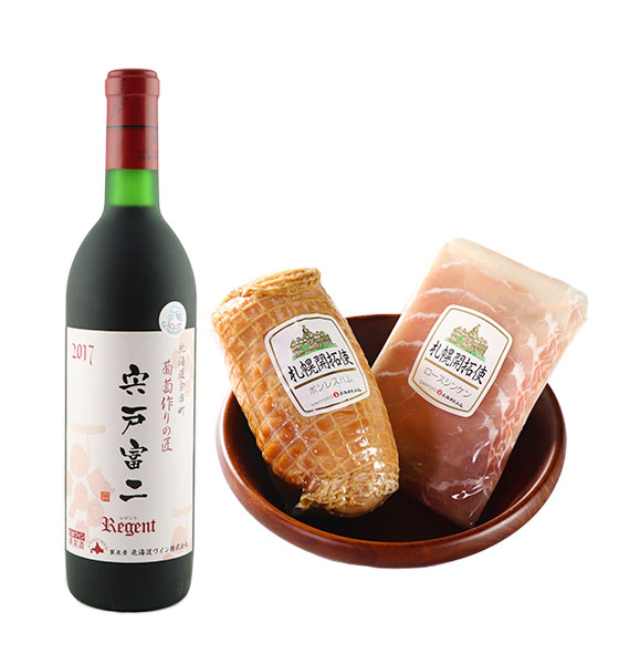 北海道 アルコール 北海道ワイン 葡萄作りの匠 宍戸富二レゲント/ボンレスハム・ロースシンケン